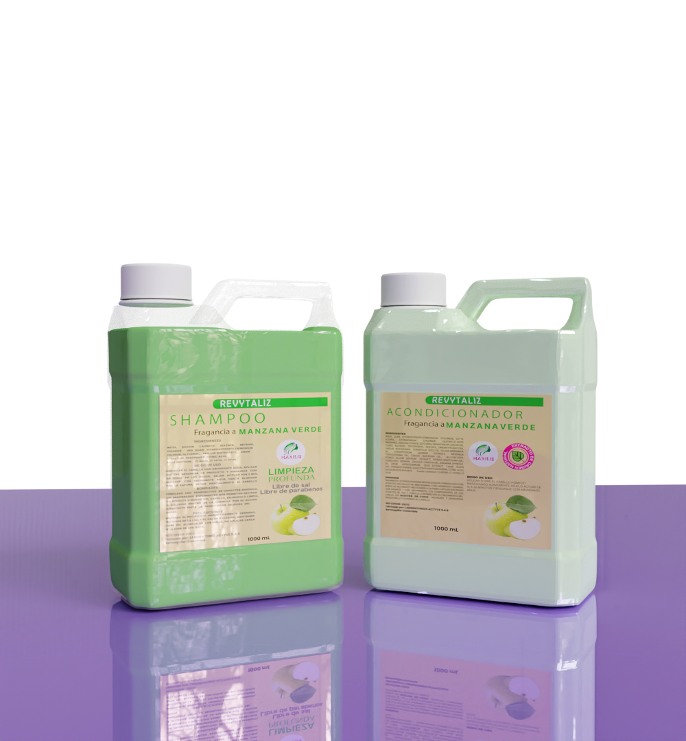 El Combo Revytaliz de Manzana Verde está formulado para ofrecer limpieza profunda y acondicionamiento equilibrado con un delicioso aroma frutal. Este dúo de shampoo + acondicionador de 1000 ml cada uno es ideal para uso profesional en salones que buscan preparar el cabello antes de procedimientos técnicos como alisados, repolarizaciones o coloraciones.