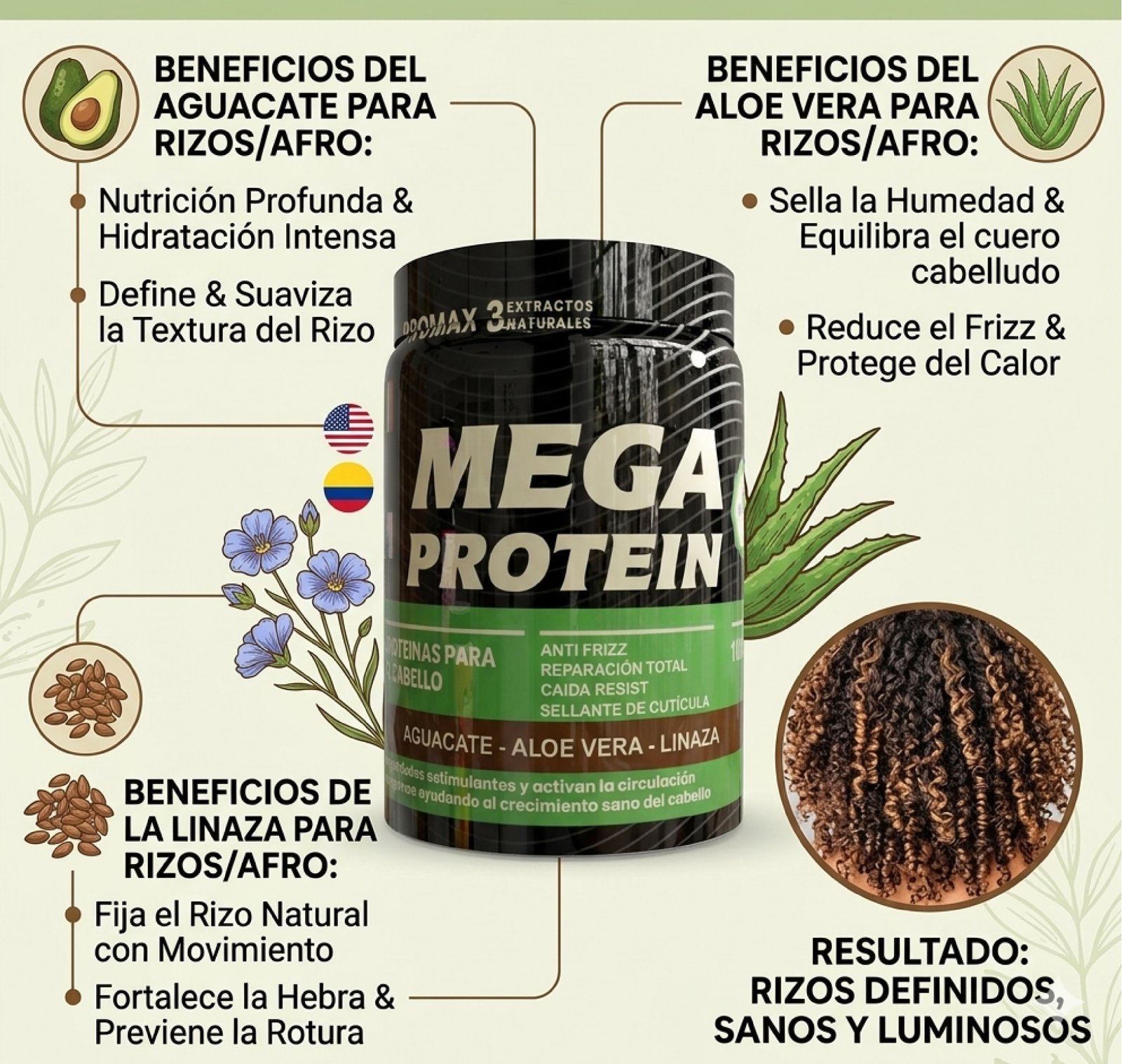 ¡Define y nutre tus rizos con el poder natural de la Mega Protein Aguacate!