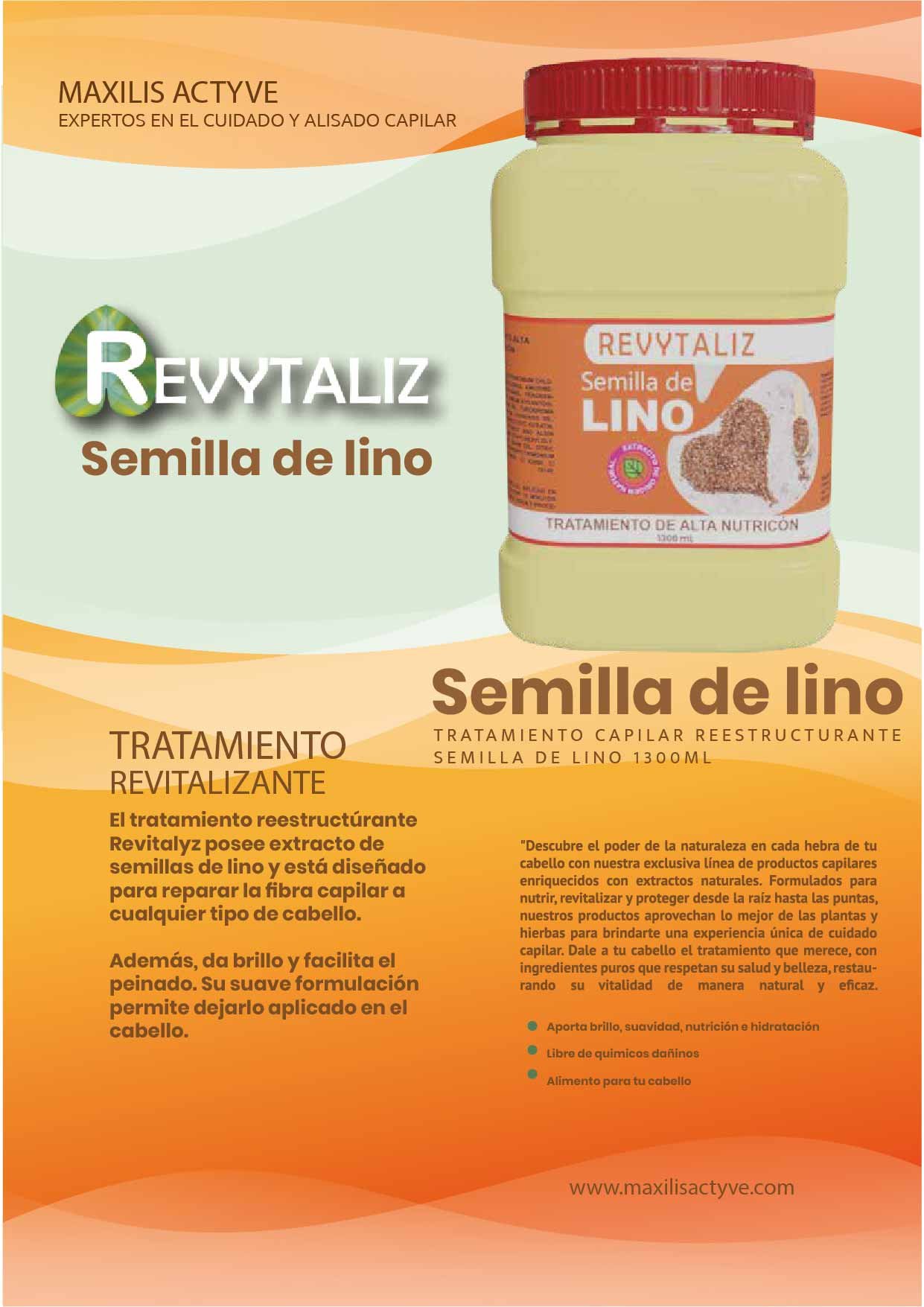 El Tratamiento Repolarizador Revytaliz de Semilla de Lino es ideal para quienes desean un cabello fuerte, brillante y con movimiento. Enriquecido con extracto natural de linaza, este tratamiento aporta omega 3, vitamina E y mucílagos vegetales, que ayudan a reforzar la estructura del cabello, mejorar su elasticidad y sellar la cutícula para evitar el frizz.
